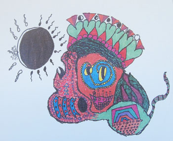 This here is the interior artwork for the physical cd of the "...is pregnant" thing. The illustrations were taken from the sketchbook of mr. Cory Bengtsen, and Mike R. wrote out all the information.