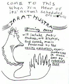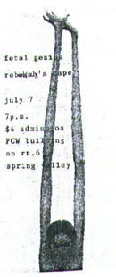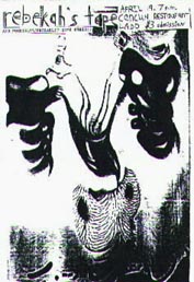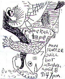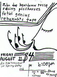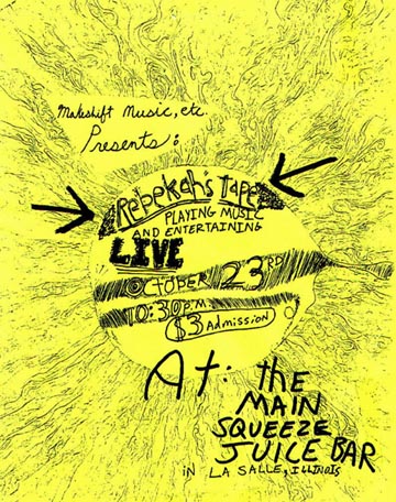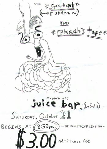 Mike made several handmade flyers along with the handout b/w copied flyers, rather than just making larger versions of the hand-sized ones. We 'released' "rebekah's tape is manatees" at this show.