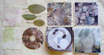 High quality, specially designed, hand cut & folded, home printed paper envelope w/ high quality printed disc, inserts, beet leaf-dyed fabric & pressed sage leaf from D. Petri's garden.